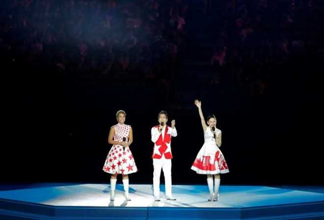 | Từ trái qua phải: Nikki Muller, Chua Enlai và Sharon Au, những người dẫn chương trình lễ khai mạc SEA Games 28 |