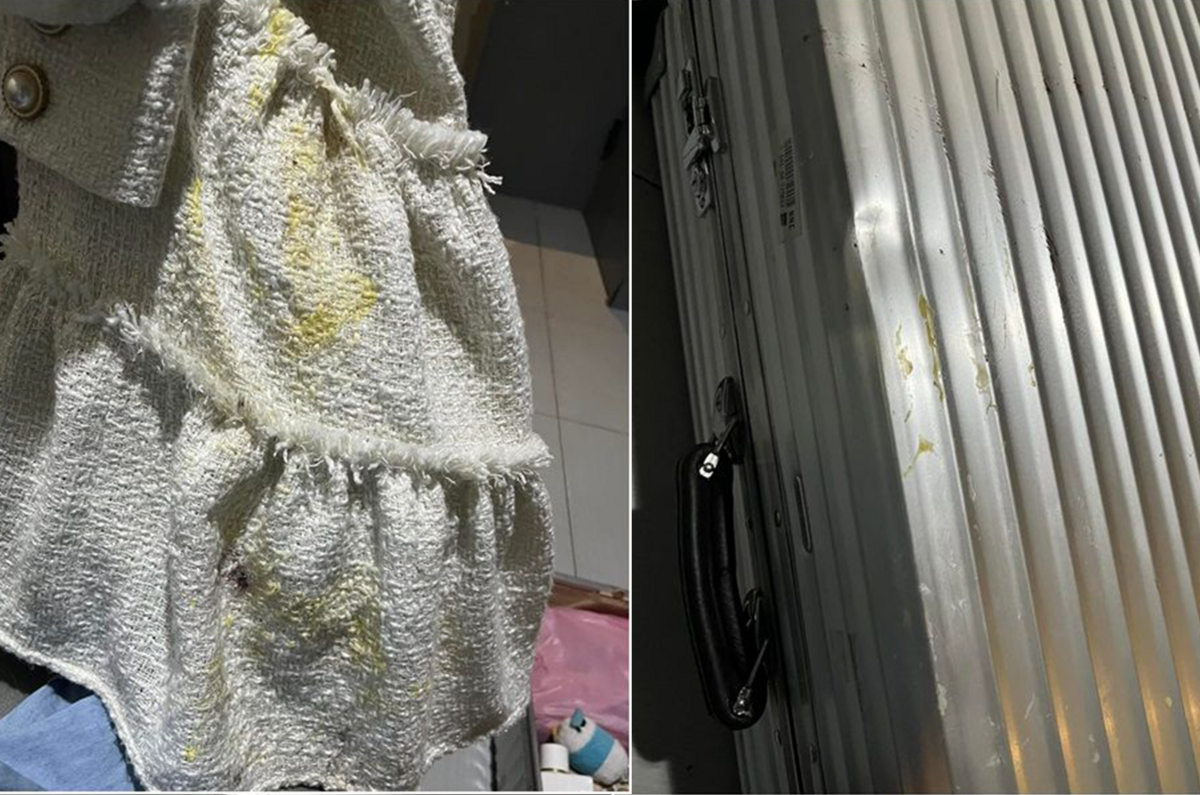 Bên trong chiếc vali cũng chịu cảnh tương tự với hỗn hợp trứng khắp nơi.