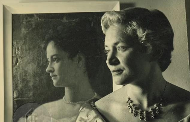 Bà Abigail Kinoiki Kekaulike Kawānanakoa chụp ảnh trước tranh chân dung của người họ hàng - Công chúa Kaiulani - vào tháng 10/1954. (Ảnh: Bishop Museum)
