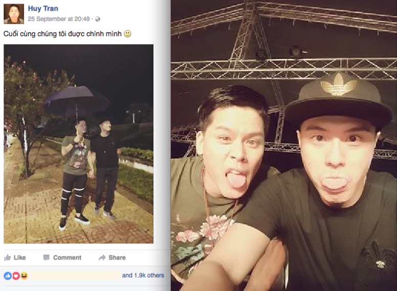 Ngày 25/9, biên đạo múa John Huy Trần bất ngờ chia sẻ một bức ảnh nắm tay một người đàn ông được chỉnh sửa để che danh tính kèm theo dòng trạng thái: “Cuối cùng chúng tôi được là chính mình”. Ngay sau đó, Lâm Vinh Hải cũng đăng tải một bức ảnh chụp cùng người thầy của mình.