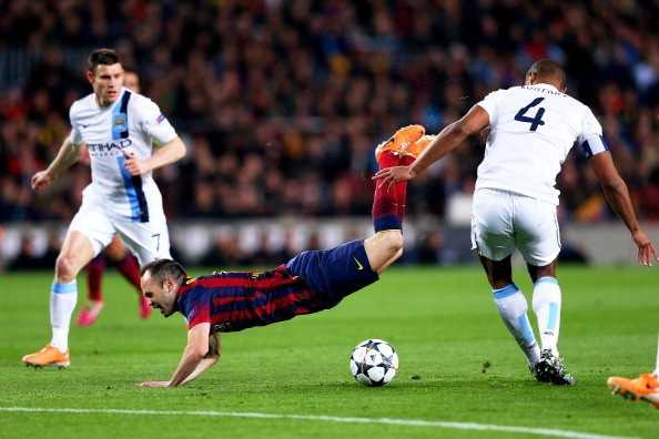 El Kun "mất tích", lối đá thiên về những đường bóng dài, xuống biên rồi tạt vào trong của Man City dễ dàng bị vô hiệu hóa. Barca không tốn nhiều công sức để khóa chặt hai cánh của Man City khi Alves và Alba thừa cả sức mạnh lẫn tóc độ để đẩy bật Kolarov lẫn Zabaleta về phía sau vạch giữa sân. Từ đó, đội chủ nhà thoải mái dâng cao tấn công và đã 1 lần đưa bóng vào lưới nhưng bị từ chối một cách oan uổng.