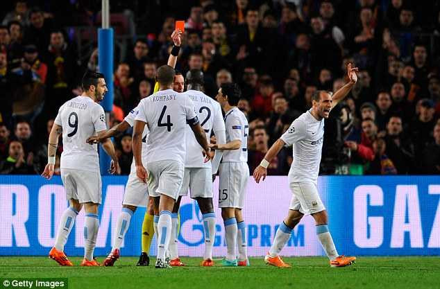 Đầu tiên là không cho Man City hưởng phạt đền dù Pique đã phạm lỗi rõ ràng với Dzeko. Ngay sau đó, rút thẻ vàng thứ 2 đuổi Zabaleta khỏi sân do lỗi phản ứng.