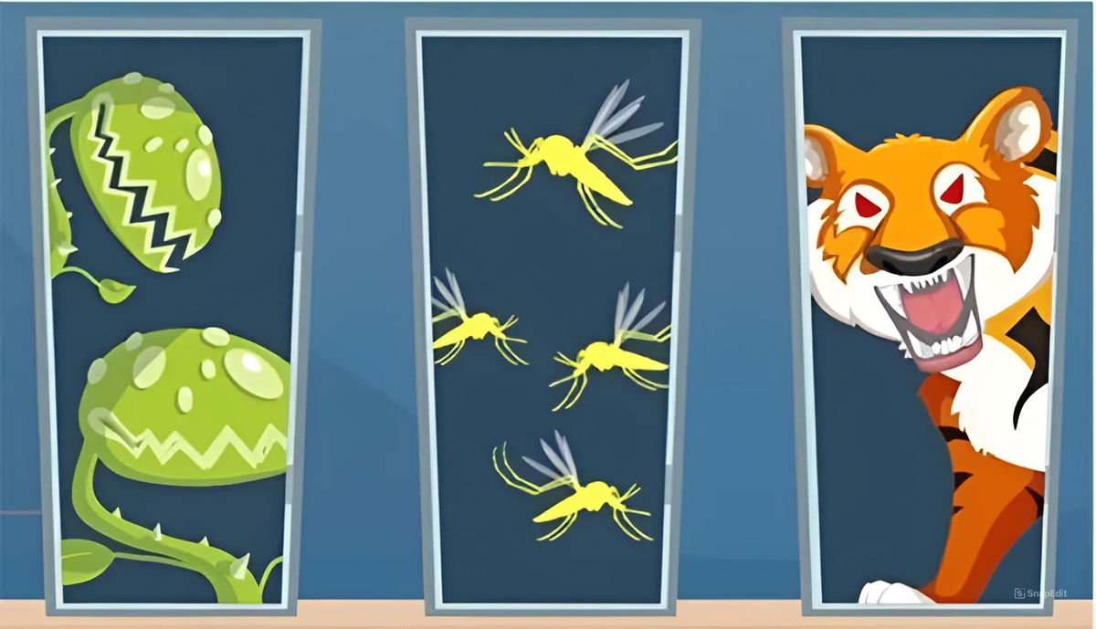Giả sử, bạn bị mắc kẹt trong phòng thí nghiệm, nơi chứa loài virus có thể khiến các sinh vật sống bị đột biến. Bạn được trang bị mặt nạ phòng độc nên tạm thời an toàn. Để thoát ra khỏi phòng thí nghiệm nguy hiểm này, bạn phải lựa chọn đi qua một trong ba cánh cửa: