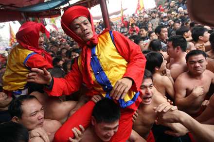 Cái lạnh sẵn có của miền Bắc kèm theo những cơn gió ào ào của mùa đông khắc nghiệt như cắt da cắt thịt cũng không thể ngăn cản những trai làng Đồng Kỵ cởi phăng áo, vận lên mình chiếc quần ngắn để tham gia lễ hội của làng…