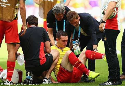 22h45: Vermaelen bất ngờ bị đau trong khi khởi động trước trận đấu