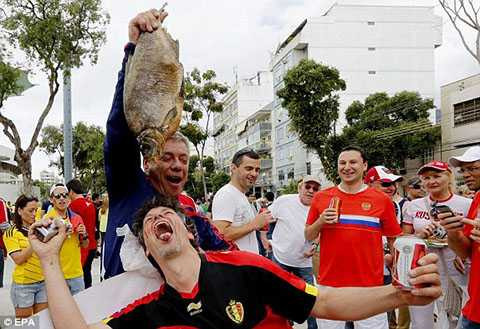 22h: Các CĐV Bỉ và Nga đã có mặt khá nhiều xung quanh sân Maracana huyền thoại