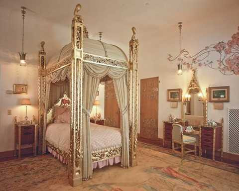 Phòng tắm được lát đá cẩm thạch hồng. Còn trên lò sưởi có hoa hồng tinh tế bằng thạch cao tỏa nhánh lên trần nhà rất sang trọng nơi con gái của chủ sở hữu ban đầu Mar-a-Lago, bà Marjorie Merriweather Post lớn lên.