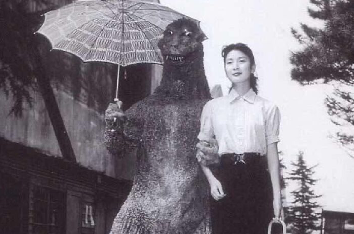 Haruo Nakajima và Momoko Kochi trên phim trường Godzilla, năm 1954.