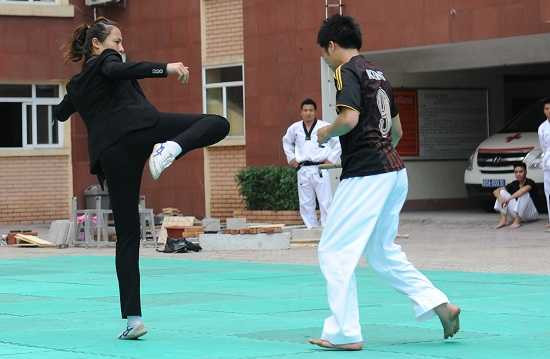 | Một pha ra đòn của nữ cảnh vệ trong bài tập bảo vệ mục tiêu |