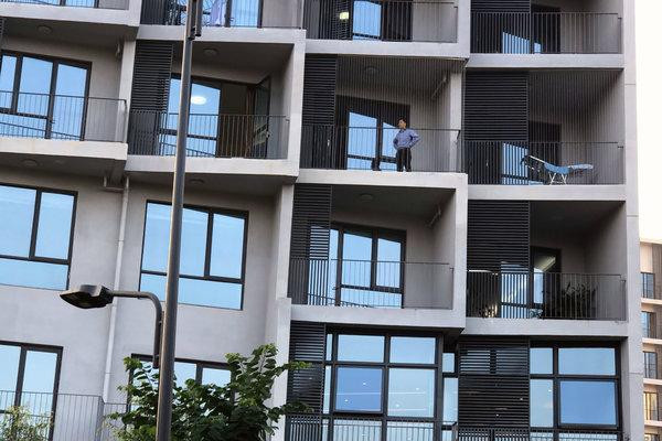 Vào ngày 26/12, phóng viên phát hiện ông Hạ nói chuyện với một phụ nữ được cho là vợ ông ở ban công bị rào lại bằng kim loại.