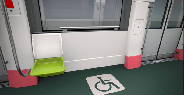 Trên các toa tàu có không gian dành cho xe lăn của người khuyết tật (được ký hiệu đặc biệt trên sàn) và ghế ngồi dành riêng cho người cao tuổi, phụ nữ có thai và trẻ em.