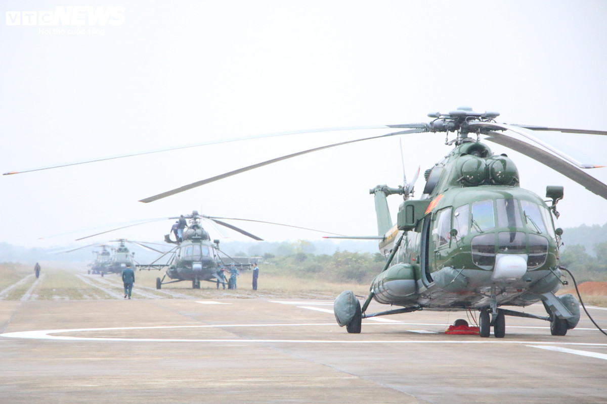 Trong buổi bay hợp luyện cùng các đơn vị tham gia lễ khai mạc triển lãm, lực lượng trực thăng ở sân bay Hòa Lạc có 7 trực thăng bay theo đội hình 3-4.