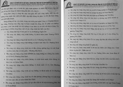 Cụ thể, theo một nguồn tin PV tiếp cận được, công ty của Văn đã thi công những công trình sau: Xây dựng nhà họp tổ dân phố 15-16 phường Nghĩa Đô; xây dựng công trình đường thoát nước trường PTCS Yên Hòa; xây dựng và cải tạo VKS quận Cầu Giấy, xây dựng và cải tạo trụ sở UBND phường Trung Hòa, xây dựng nhà văn hóa xã Cổ Nhuế, xây dựng HTX nông nghiệp xã Xuân Phương, xây dựng và cải tạo trường mầm non Xuân Đỉnh B...