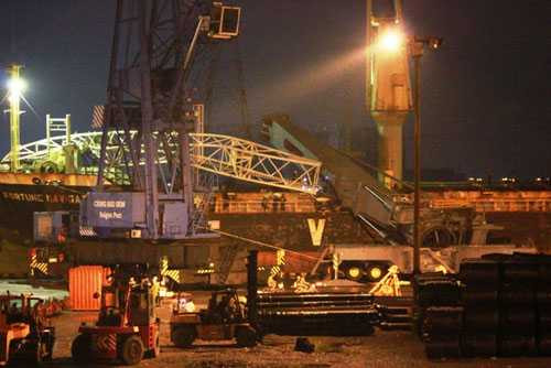 23h ngày 24/11, cần cẩu Liebherr 104T (thuộc cảng Tân Thuận) bốc dỡ hàng cho tàu Fortune Navigator của Công ty Cổ phần Vận tải biển Việt Nam (Vosco) bị đổ đập vào phía cabin lái và mạn tàu.