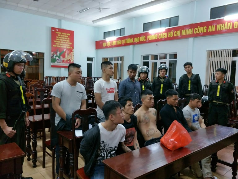 Ngay sau khi tiếp nhận nhận tin báo, cơ quan công an có mặt ngăn chặn kịp thời vụ việc, bắt giữ 9 thanh niên và thu giữ 2 xe ô tô, 12 cây rựa, 1 con dao, 7 chai thủy tinh có chứa xăng...