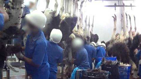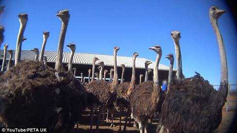 | Những con đà điểu còn non mới 1-2 tuổi đã bị cho vào máy để lấy da |