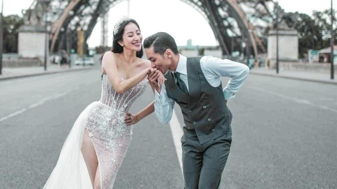 Bên trong thiệp cưới không chỉ hé lộ thời gian, địa điểm mà còn đính kèm thêm ảnh cưới chụp tại Pháp của Khánh Thi - Phan Hiển. Cặp đôi kiện tướng dancesport có sự đầu tư rất chỉn chu cho hôn lễ lãng mạn sắp tới của mình.