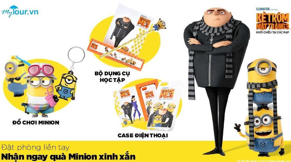Nếu bạn vô cùng thắc mắc mà chưa tìm được câu trả lời thì Mytour.vn sẽ bật mí bí mật cho bạn ngay đây. Đó chính là sự trở lại của siêu phẩm “Kẻ cắp mặt trăng” đấy. “Kẻ cắp mặt trăng 3” sẽ chính thức được khởi chiếu vào ngày 30/06/2017 tại các hệ thống rạp trên toàn quốc. Bất ngờ hơn nữa, cơn lốc quà tặng cực khủng từ nhà sản xuất “Kẻ cắp mặt trăng” cũng đang đổ bộ vào “vương quốc Mytour.vn”. Bạn đã sẵn sàng để về chung một nhà cùng các phần quà xinh xắn này rồi chứ?.