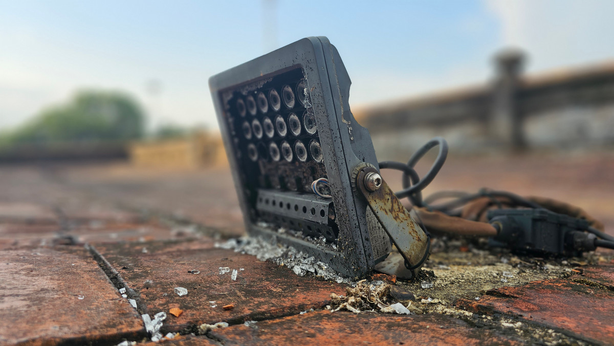 Nhiều đèn chiếu sáng ở khu vực Kỳ đài Kinh thành Huế bị đập phá hư hỏng. (Ảnh: H.D)