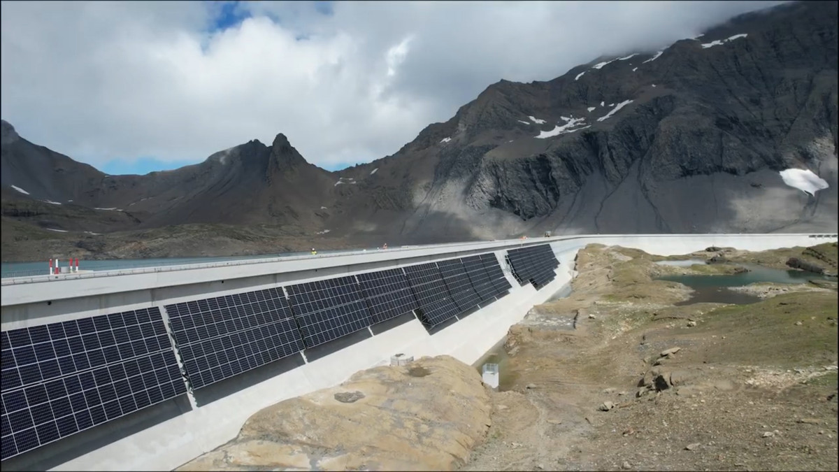 Hệ thống pin mặt trời dài 1km, gồm 5.000 tấm, lắp đặt trên đập nước Muttsee (Thụy Sĩ) dự kiến sản xuất 3,3 triệu kilowatt điện mỗi năm, đủ cung cấp cho 700 ngôi nhà.