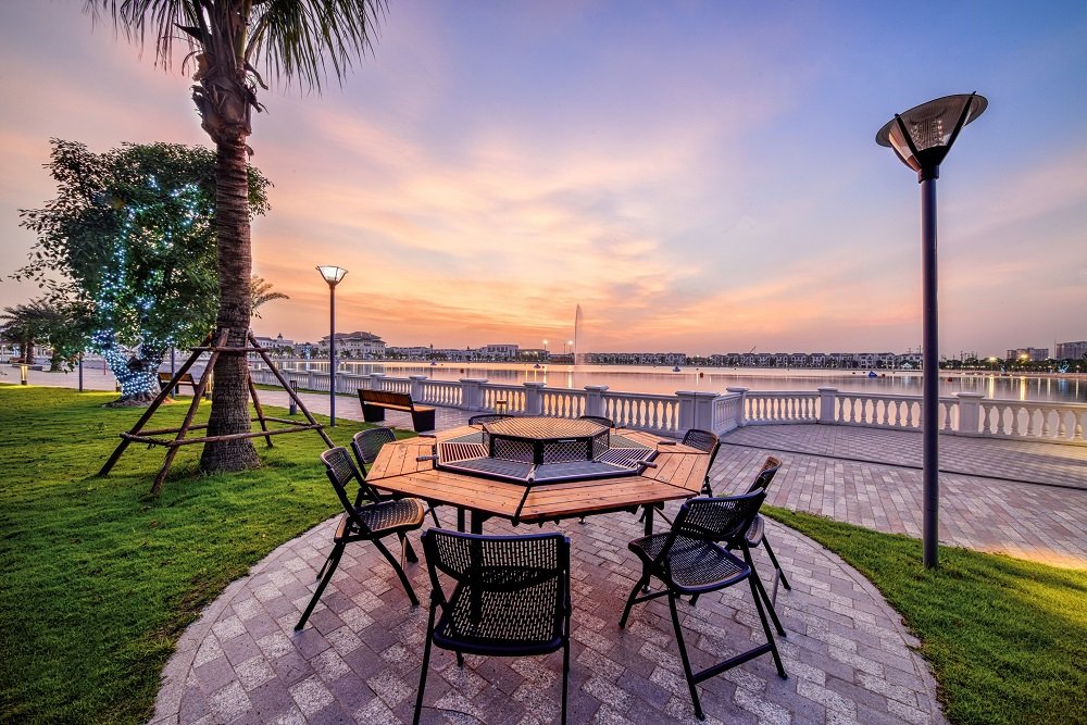 Hồ Harmony có điểm nhấn nhà hàng nổi Veranda cùng nhiều tiện ích như quảng trường, đảo đọc sách, sân thể thao, công viên thú cưng, sân tập golf hướng hồ, chòi BBQ,… cho trẻ em vui chơi