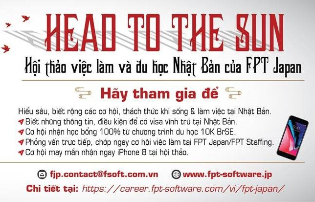 Bạn biết tiếng Nhật hoặc không biết tiếng Nhật, làm trong ngành IT hoặc “non-IT”, chỉ cần bạn có mong muốn được du học, làm việc và sinh sống dài hạn tại Nhật Bản đều sẽ được đón tiếp tại sự kiện Head to the Sun của FPT Japan.