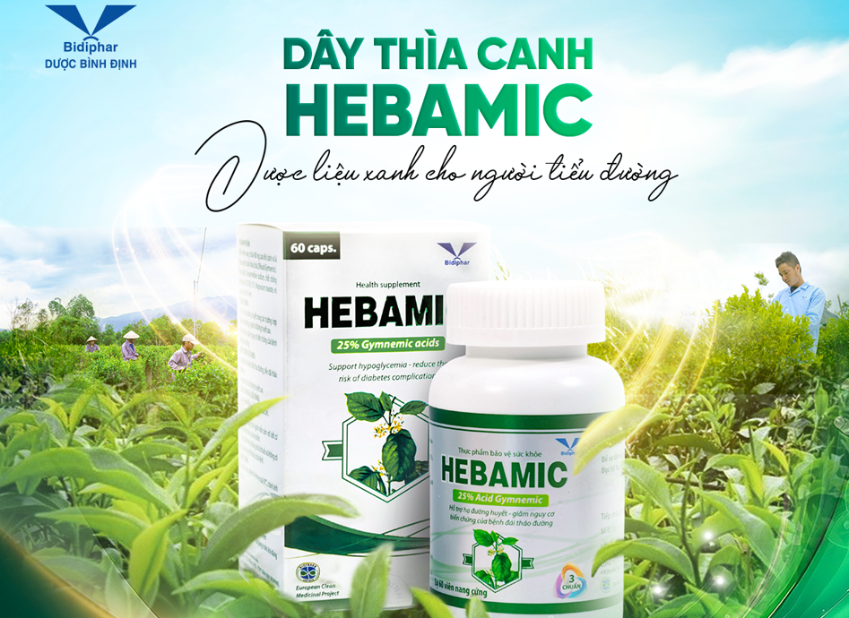 Hebacmic là sản phẩm chiết xuất từ dây thìa canh, là một trong các thảo dược có hoạt tính ổn định đường huyết hiệu quả. Sản phẩm được Cục ATTP - Bộ Y tế cấp phép lưu hành với công dụng hỗ trợ hạ đường huyết trong các trường hợp đái tháo đường, người có đường huyết cao, hỗ trợ làm giảm nguy cơ biến chứng của bệnh đái tháo đường.