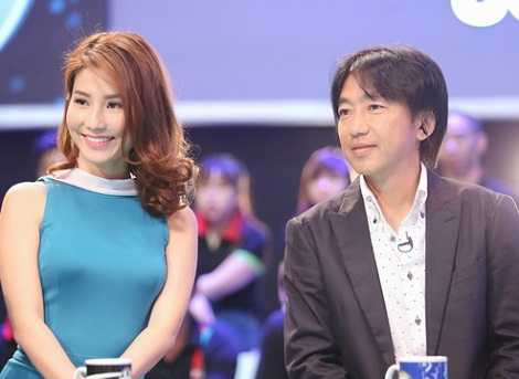 | HLV tham gia bình luận bóng đá trên truyền hình cùng người đẹp Diễm My 9X. |