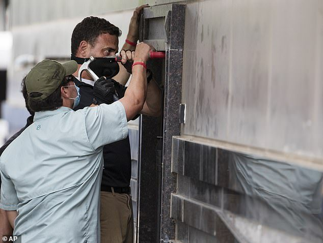Nhóm người này dùng các công cụ điện để cạy cánh cửa này ngay sau khi yêu cầu Trung Quốc đóng cửa lãnh sự quán tại Houston của Mỹ có hiệu lực vào 16h chiều 24/7.