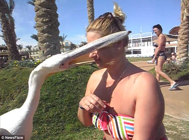 Một chú mèo đang rình chuột thì bị bồ nông "đánh úp".