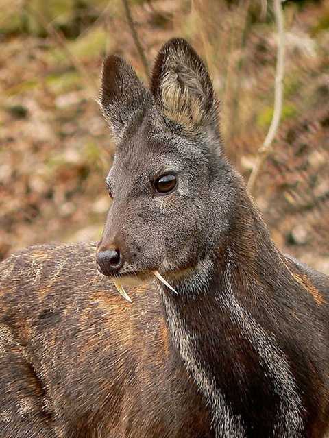 | Nai nước, hay còn có tên gọi là nai “ma cà rồng” thường sinh sống ở Trung Quốc và Hàn Quốc. Loài nai này thường chỉ cao 8cm, có bộ răng sắc nhọn chìa ra ngoài giống như ma cà rồng. |