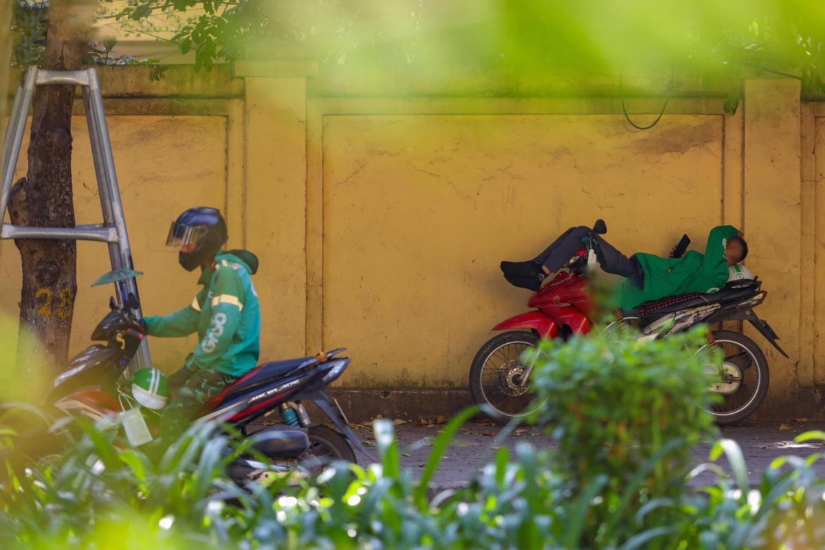 Thời gian này, dễ dàng bắt gặp tài xế xe ôm công nghệ nằm dài chờ "nổ cuốc".