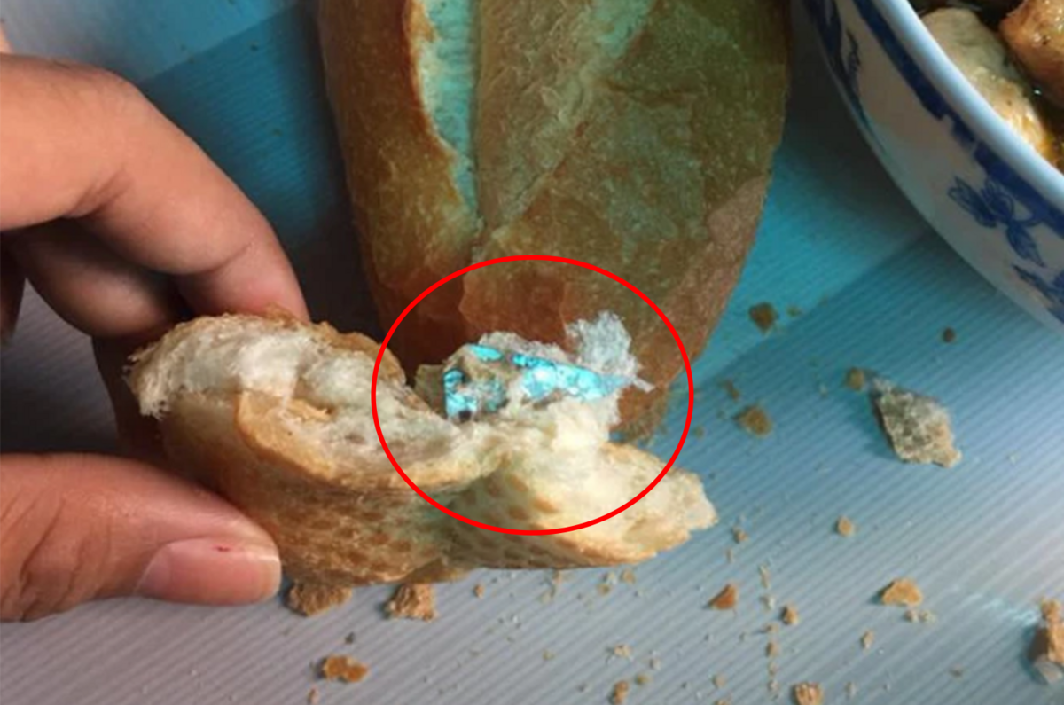 Trải nghiệm ẩm thực kinh hoàng này được một cô gái thuật lại trên mạng xã hội. Chuyện là vào một buổi sáng, cô nàng đang hí hửng xé bánh mình để ăn cùng với món bò kho. Nào ngờ, trong lúc đang xé lại xuất hiện một vật thể lạ lẫn trong ổ bánh mì nóng giòn, đó chính là một phần của lưỡi dao lam bén ngót.