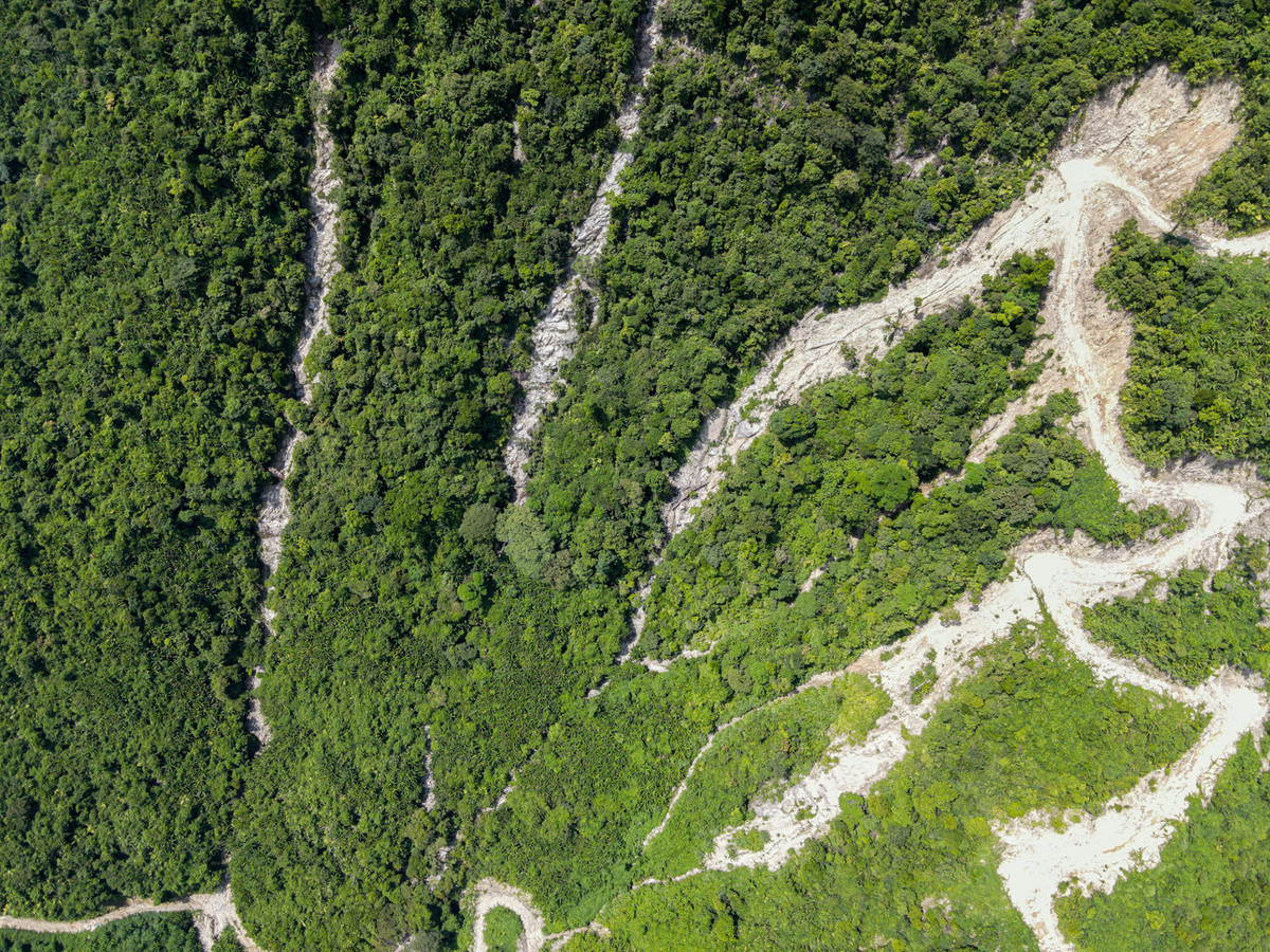 Nhiều khu vực đất rừng bị đơn vị thi công đào xới để làm đường chở vật liệu bị sạt lở, có nơi diện tích khoảng 15m.
