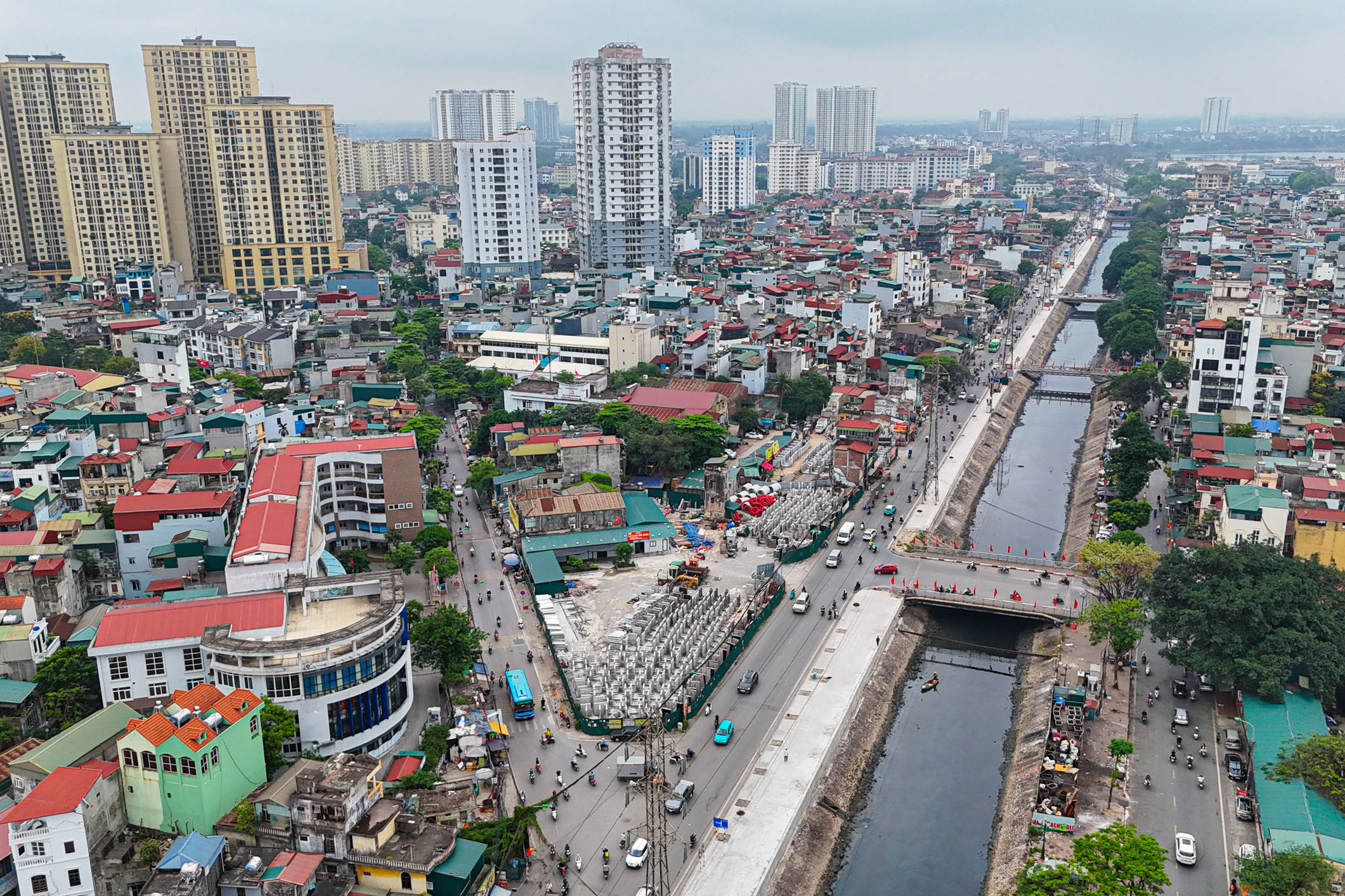 Một trong những khu vực được giải phóng mặt bằng quan trọng trong dự án là khu chợ Mai Động. Trước đây, khu vực này là một chợ sầm uất, nay đã được giải tỏa và trở thành nơi tập kết vật liệu xây dựng, đồng thời cũng là trụ sở của Ban chỉ huy công trình.
