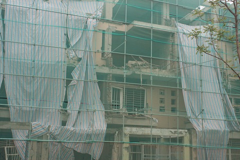 Vài căn hộ ngay cạnh nơi xảy ra vụ nổ hư hỏng nặng đang được sửa chữa.