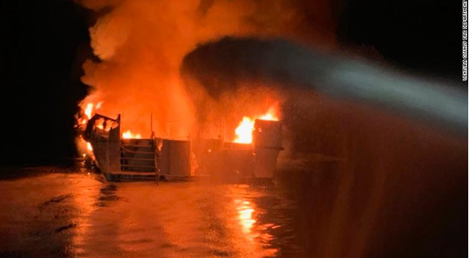 Một số hình ảnh ghi lại tại hiện trường cho thấy con tàu chìm trong biển lửa. Nhiều tàu tuần tra, xuồng cao tốc và trực thăng được điều động tới để hỗ trợ nhưng công tác cứu trợ gặp rất nhiều khó khăn vì sương mù dày dặc dọc bờ biển Nam California.