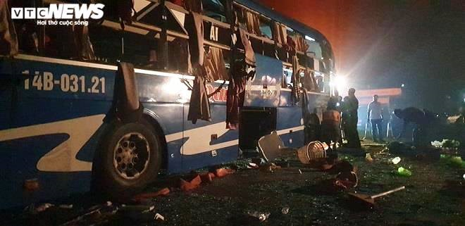 Cụ thể, khoảng 20h45 cùng ngày, tại quốc lộ 10, đoạn qua ngã ba Đợi thuộc xã Đông Hải (Quỳnh Phụ, Thái Bình), xe ô tô tải BKS 34C-239.83 kéo theo bồn va chạm với xe ô tô khách BKS 14B-031.21.