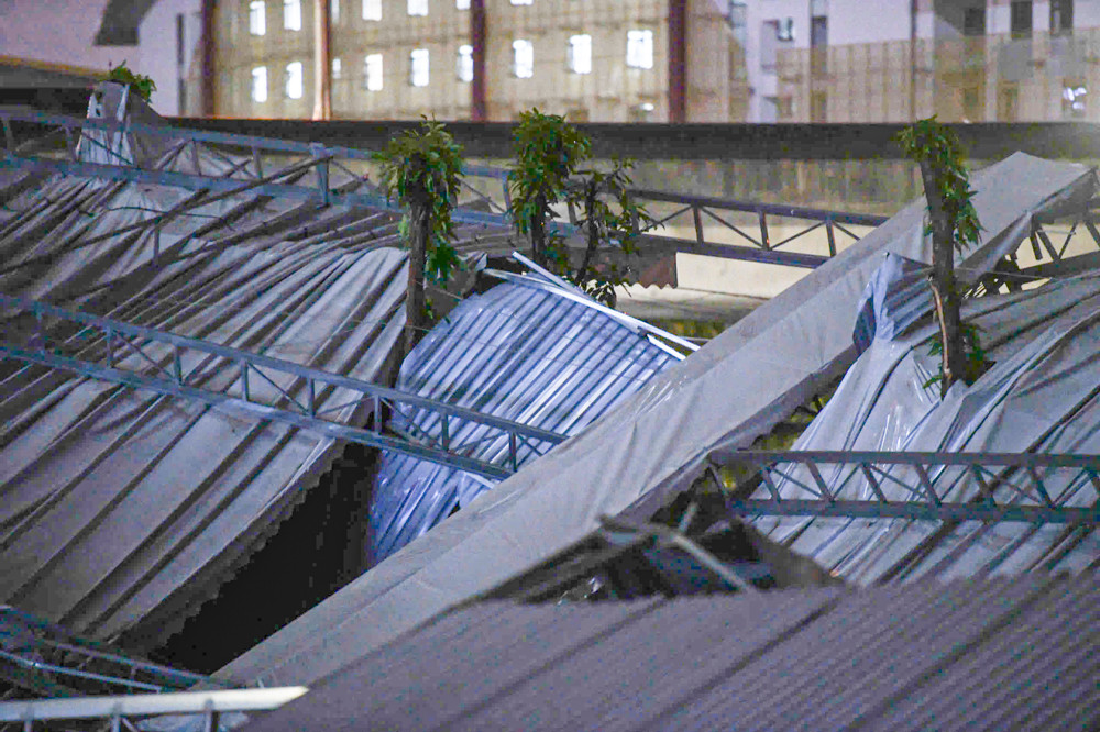 Thời điểm xảy ra sự cố khu vực này có mưa và gió mạnh. Mái che của cụm sân bất ngờ bị rung lắc dữ dội, sau đó đổ sập xuống.