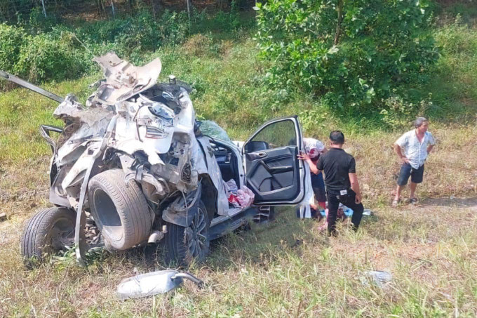 Ô tô 5 chỗ bị xe container tông, hất văng xuống vệ đường nát bét, cùng lúc xe tải và xe container khác lao tới đâm trúng xe gây tai nạn khiến 3 người thương vong.