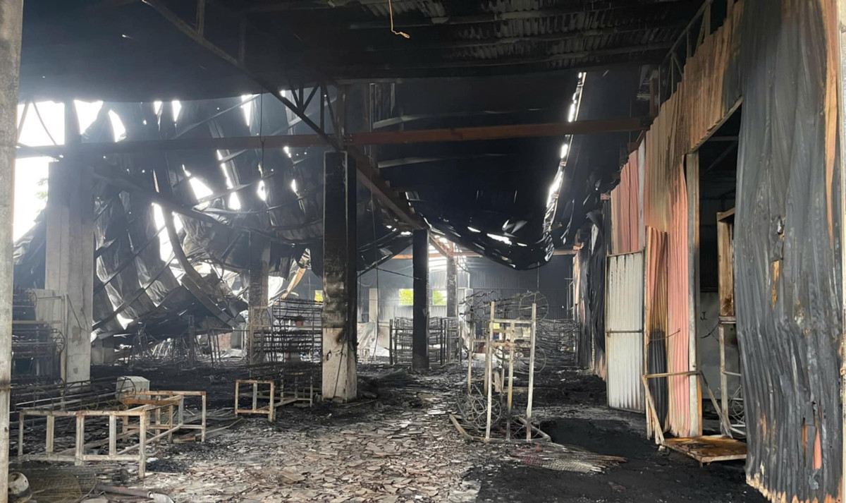 Vụ cháy gây thiệt hại cho 3 nhà xưởng, diện tích khoảng 3.000 m². (Ảnh: CTV)