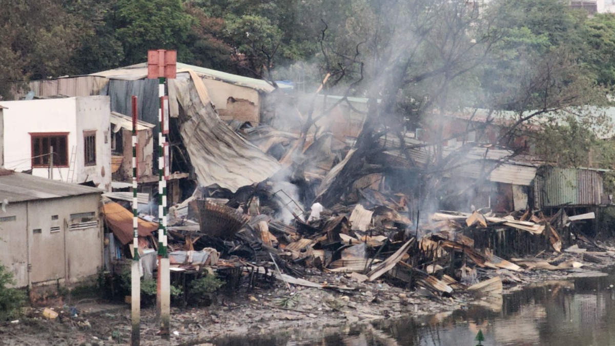 Hiện trường tan hoang sau vụ cháy dãy nhà ven kênh ở TP.HCM