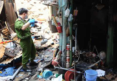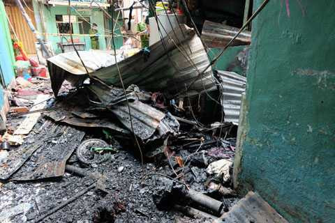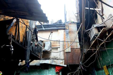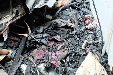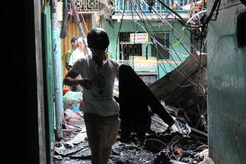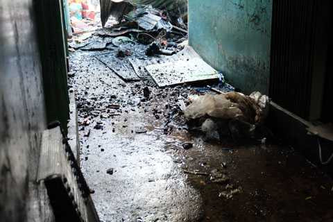 | Hiện trường bên trong các căn nhà bị đốt cháy rất nguy hiểm, có thể đổ sập bất cứ lúc nào. |