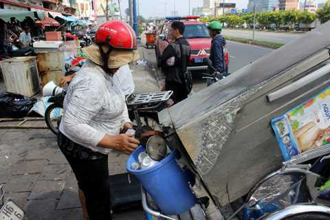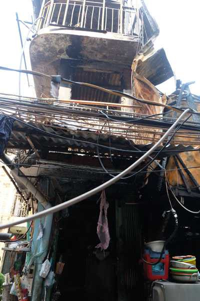 | Chiếc tủ lạnh bị cháy xém gần hết là tài sản duy nhất còn sót lại trong vụ cháy của bà Lương Thị Vui. Dù nó bị hư hỏng nặng nhưng vì tiếc của bà vẫn giữ lại và đem gửi nhờ nhà người quen ở quận 4. |