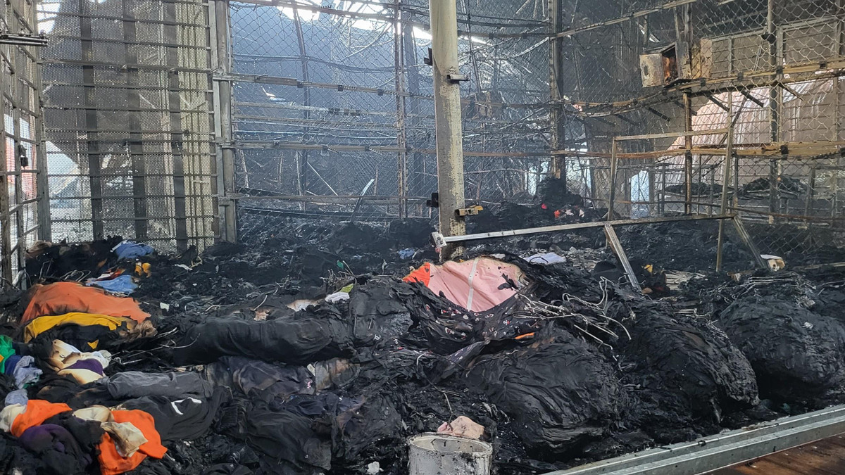 Những gian hàng quần áo chỉ còn lại đống tro tàn.