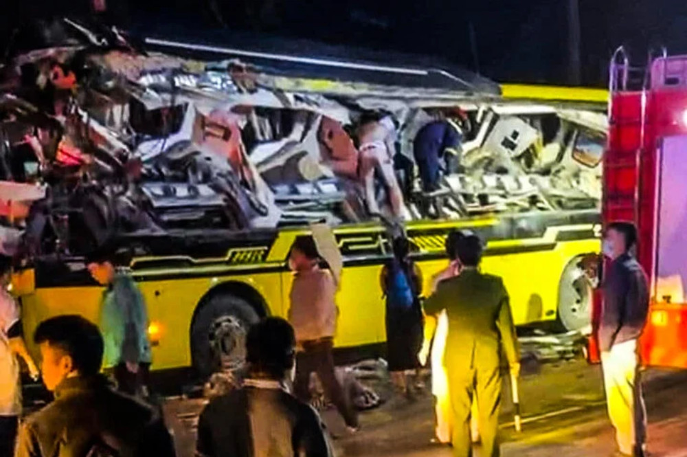 Video: Hiện trường vụ tai nạn giữa ô tô khách với xe container, 5 người tử vong