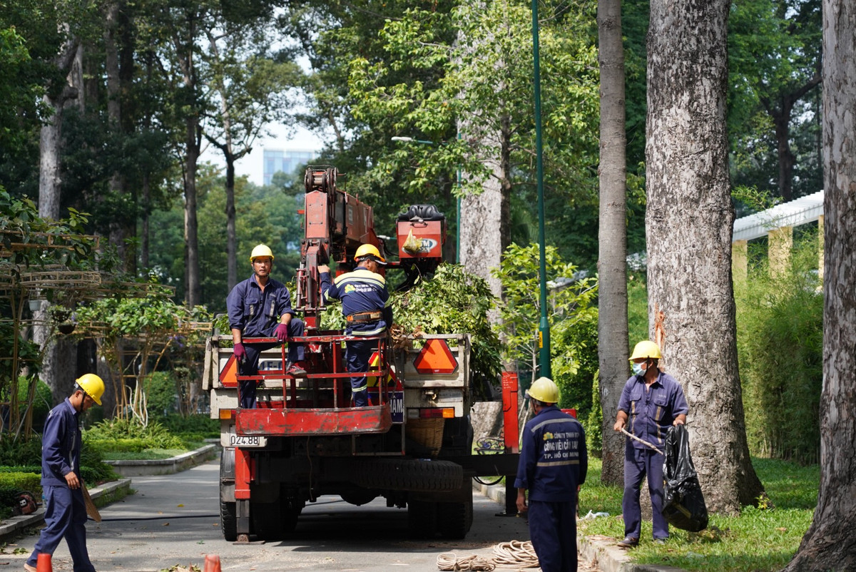 Đến 9h30 cùng ngày, nhân viên cây xanh vẫn đang dọn dẹp hiện trường.