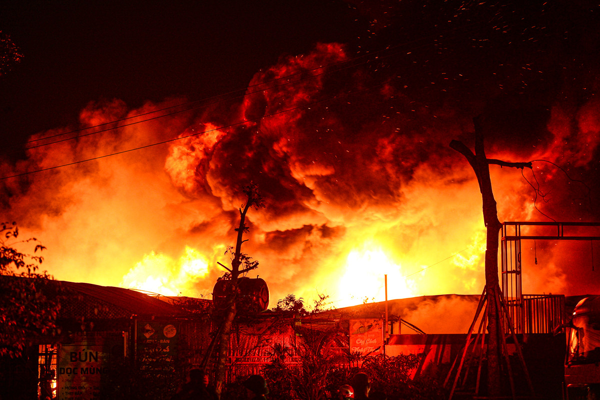 Theo ghi nhận của PV Báo Điện tử VTC News, khu vực xảy ra hoả hoạn là dãy nhà xưởng rộng khoảng 1.500 m2, gồm nhiều kho hàng, khu vực kinh doanh quán ăn và nhà dân.