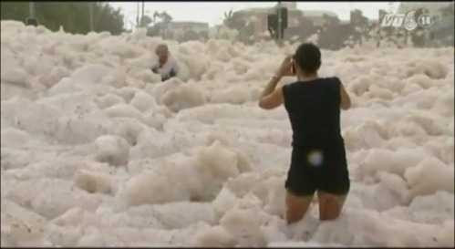 Hình ảnh kì thú bọt biển dày đến 3,5m bao phủ thị trấn: