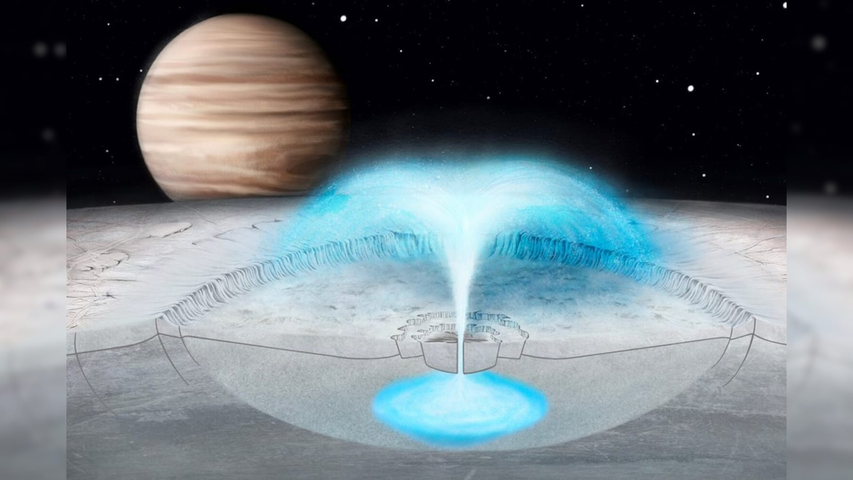 Nghiên cứu cho thấy các chùm tia nước bắn ra từ lớp vỏ của Europa thay vì đại dương của nó. (Ảnh: Justice Blaine Wainwright)
